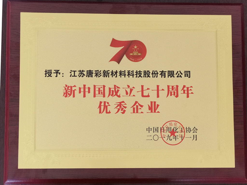 2019年11月7日,在中國(guó)日用化工協(xié)會(huì)召開的2019年會(huì)暨新中國(guó)成立七十周年全國(guó)日用化工行業(yè)優(yōu)秀企業(yè)和優(yōu)秀工匠頒獎(jiǎng)典禮上,經(jīng)過(guò)組織推薦及專家評(píng)審,我司從眾多企業(yè)中脫穎而出,被授予“新中國(guó)成立70周年優(yōu)秀企業(yè)(單位)”榮譽(yù)稱號(hào)。